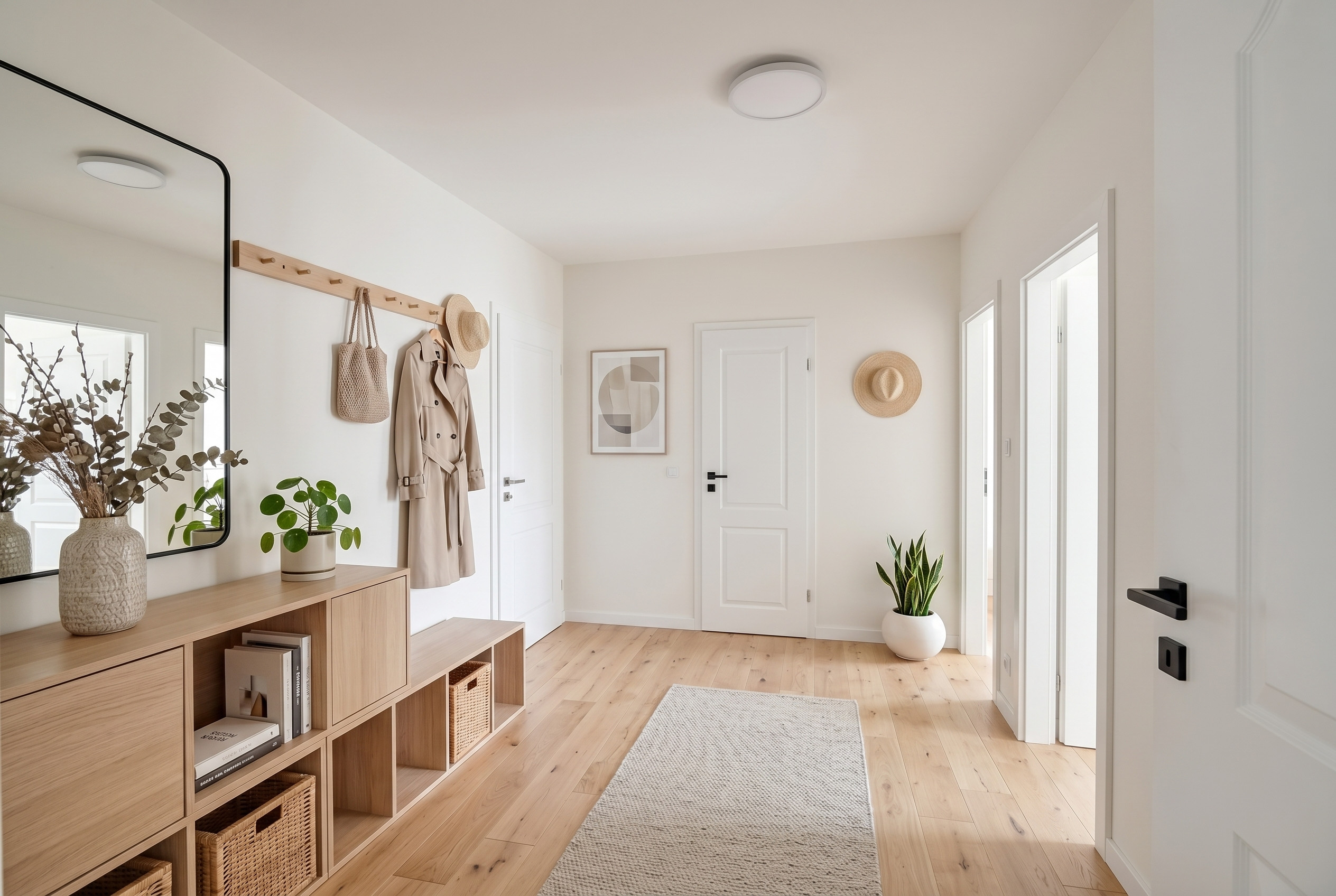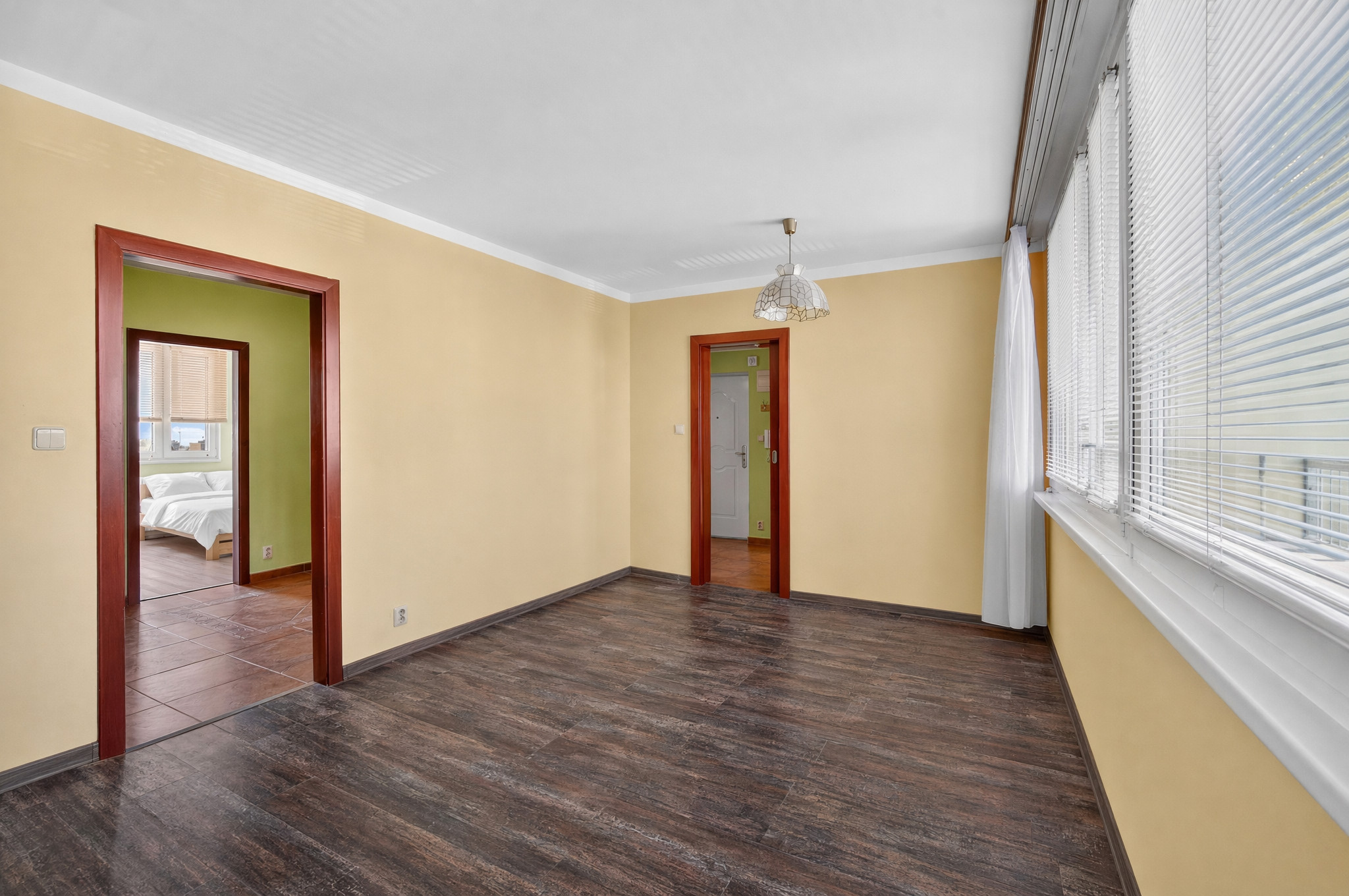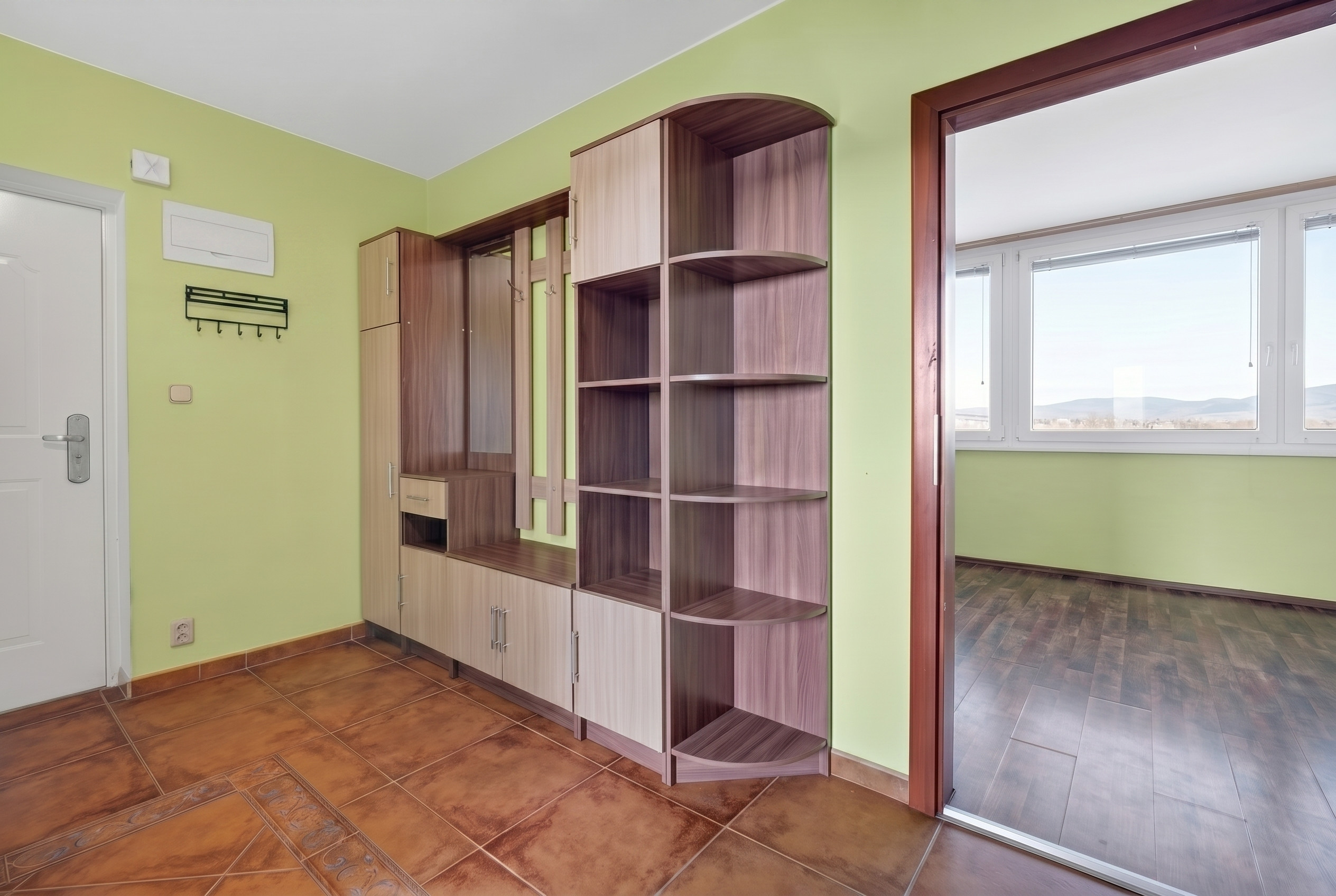 Po vstupu do bytu je prostorná chodba, ze které se dostaneme do všech místností. Je opravdu velkorysá, takže při případné rekonstrukci nabízí zajímavý potenciál pro lepší rozložení, vestavěné úložné řešení nebo otevřenější koncept.