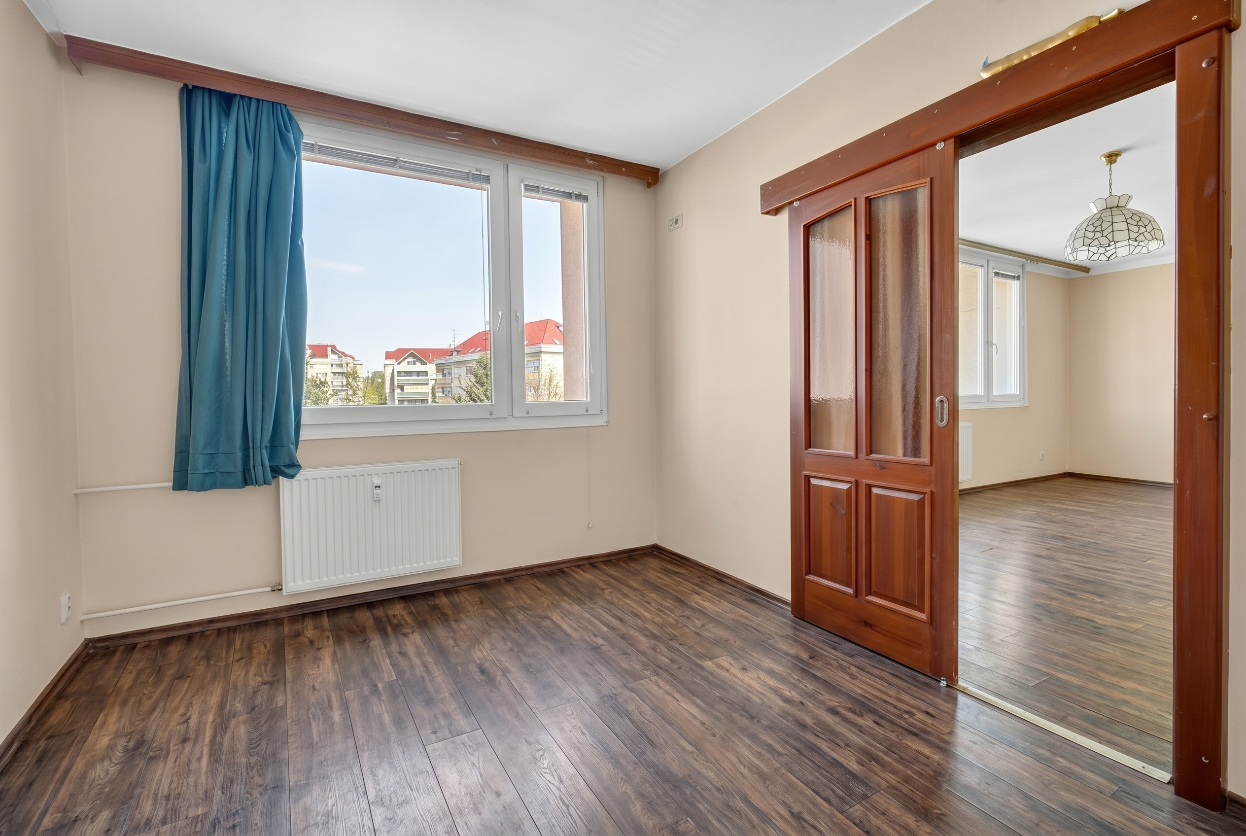 a za obývacím pokojem navazující ložnici